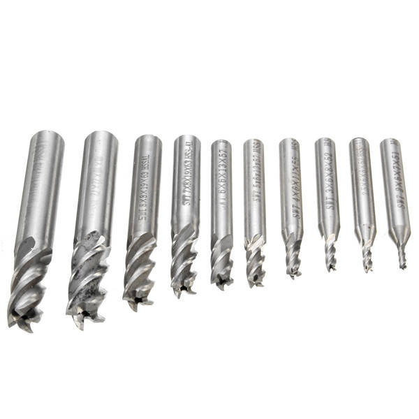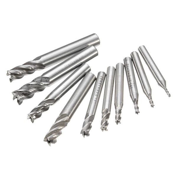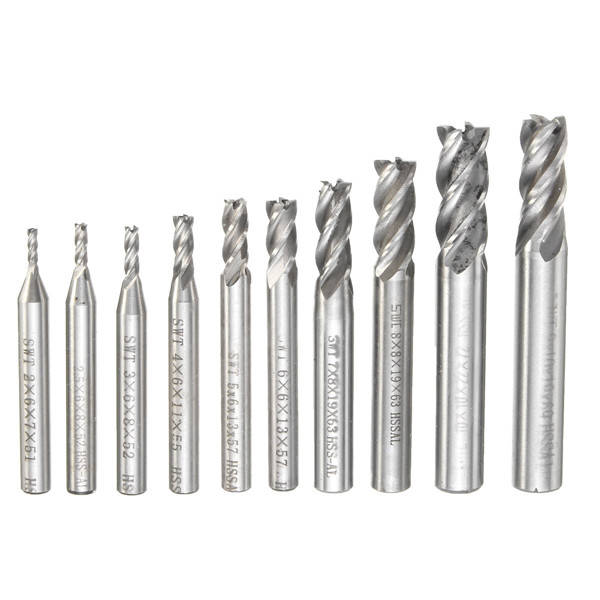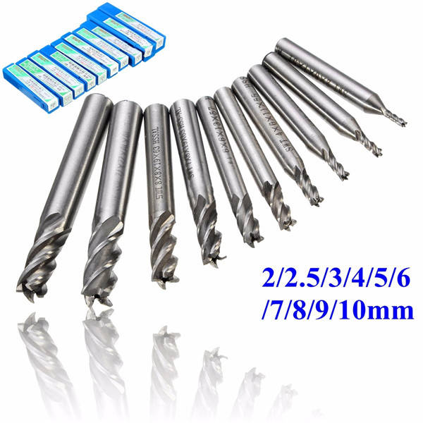 10pcs 2-10mm 4 Flute Milling Cutter HSS-Al End Mill Cutter CNC Tool