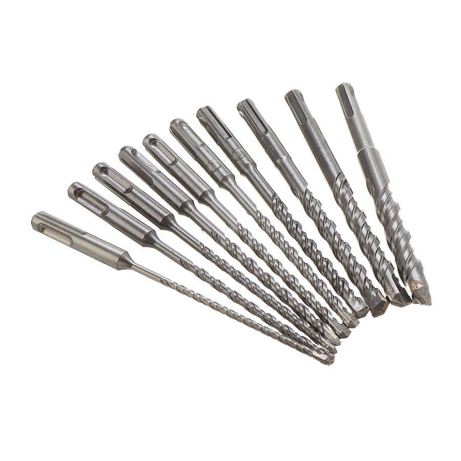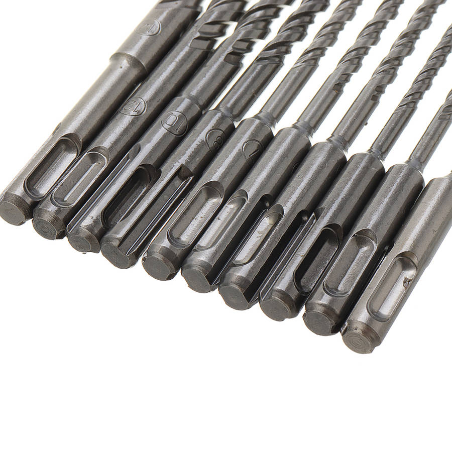 10Pcs 4-14mm Masonry Drill Bits Double SDS Plus Slot Electric Hammer Drill Bits Set 160mm Metal HSS Drill Set For Electric Drills Cutting