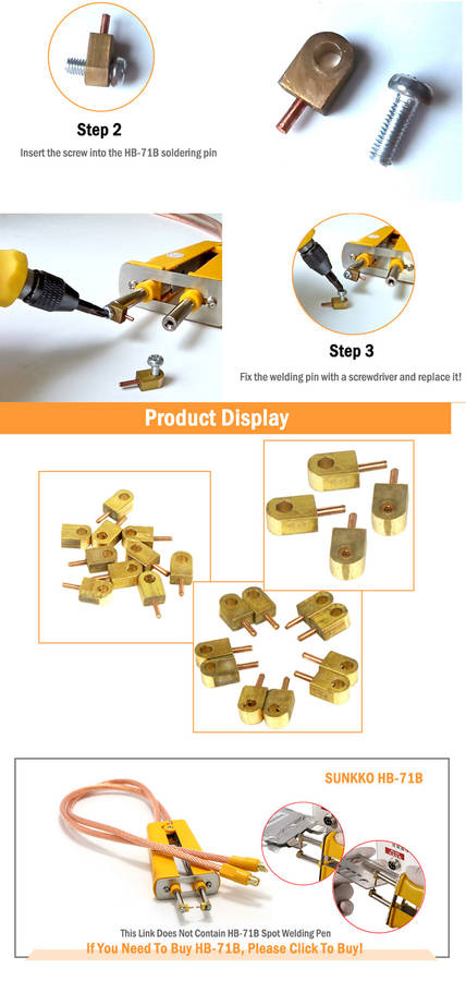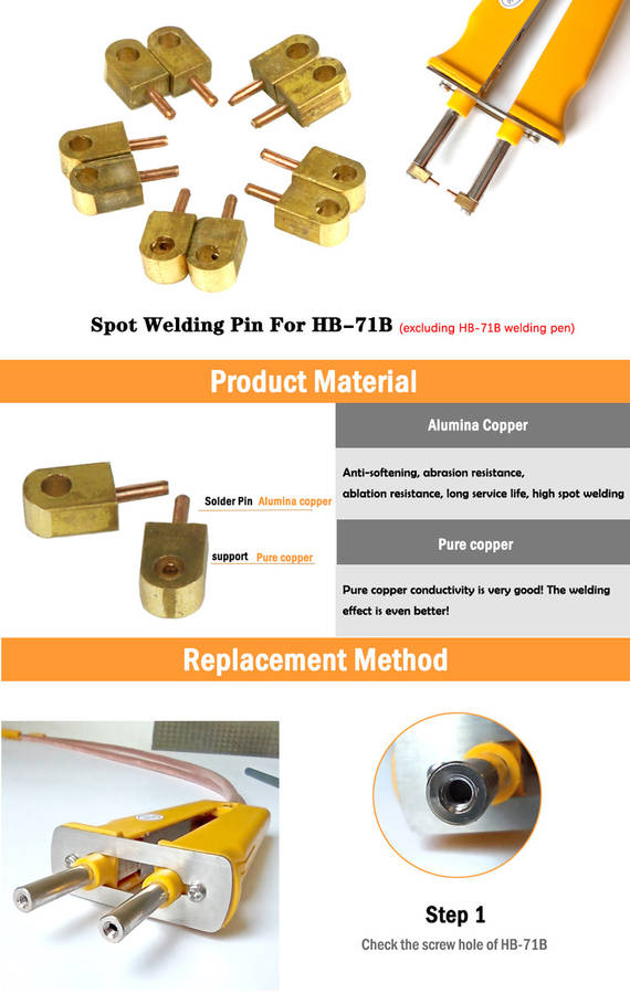 Features: This is the soldering pin of the HB-71B soldering pen. This is just an accessory. It does not contain the HB-71B spot soldering pen. Package Included: 10 x Alumina Copper Welding Pin for HB-71B Detail Pictures: