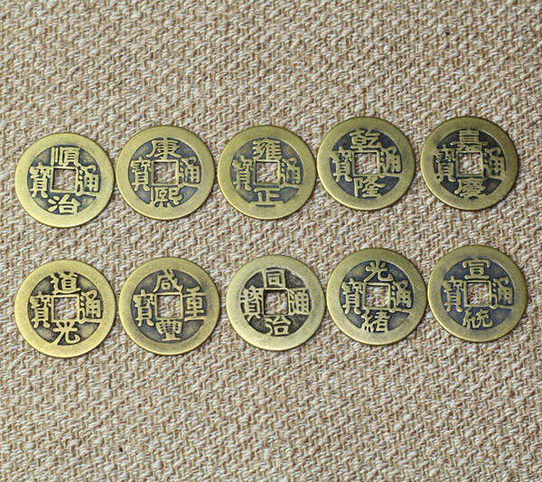 Description: Ancient coins are useful feng shui supplies and they will be added to the feng shui items. In Chinese , they are the symbolic of good fortune ,carrying the copper coins or wearing in the neck, can increase their luck. It can enhance the effectiveness of the substance of feng shui items, such as adding the brave, enhance effect. 10 emperor coins including Junji, Kangxi, Yongzheng and Qianlong, Jiaqing, Daoguang, Xianfeng, Tongzhi and Guangxu, Xuantong,we are randomly shipping .
