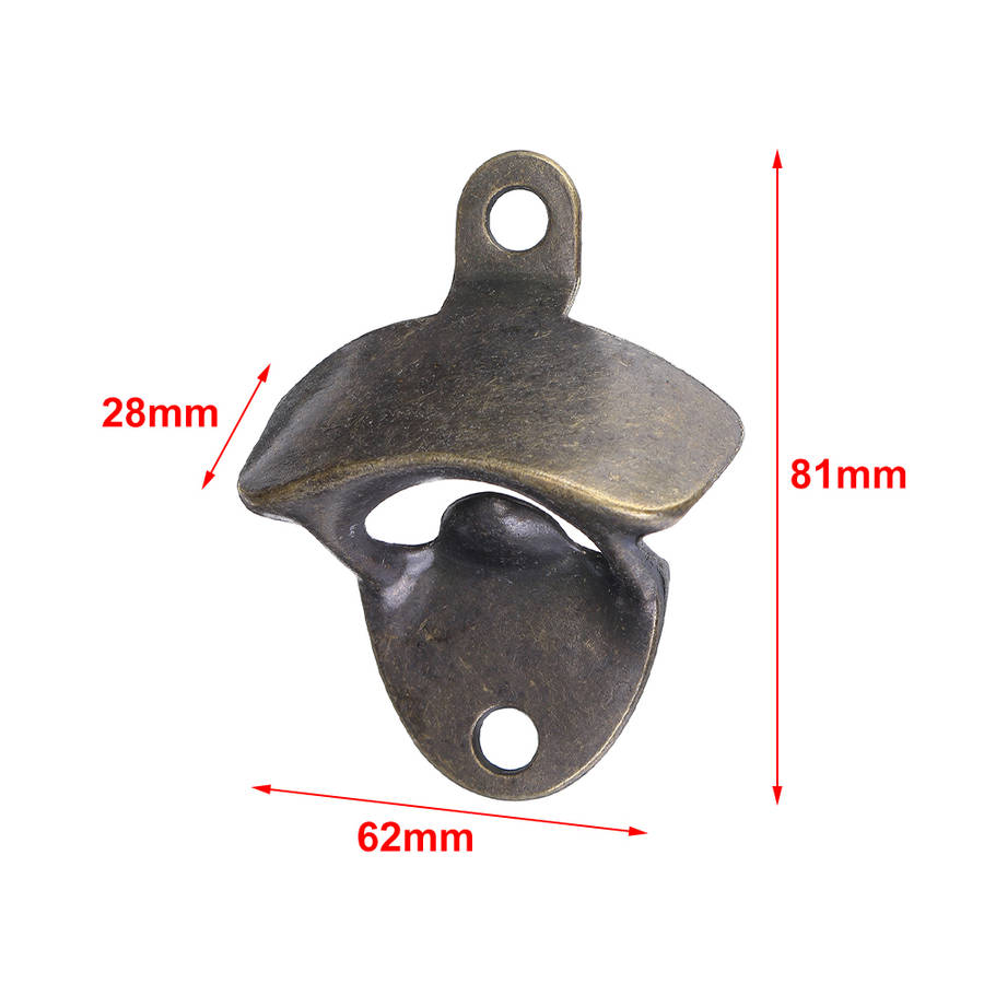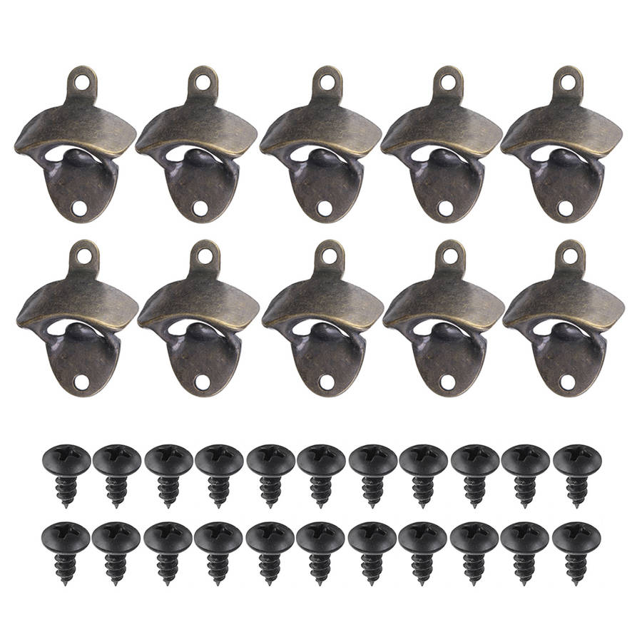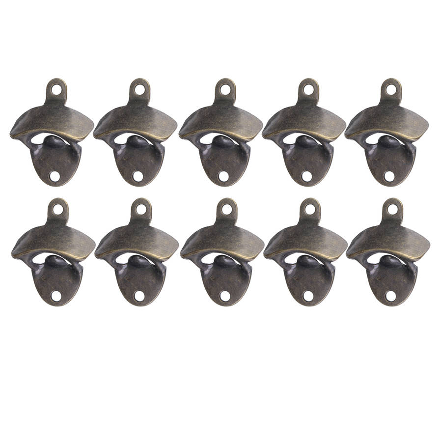 Feature: - It`s very practical, you can open soda bottle cap easily with it, and - it also can be a considerate gift for your buddies. - High quality, easy install, durable. - Unique wall mount design, convenient, anti-rust. - Suitable for opening all types of crown top bottles. - Used in kitchen, bar, game room, club house, garage or boat,etc. Specification: Material: Zinc alloy Color: Bronze Package included: 10 x Bottle Openers Details Pictures: