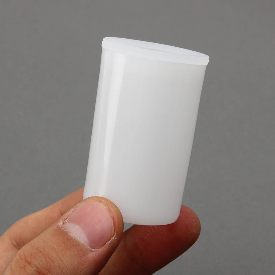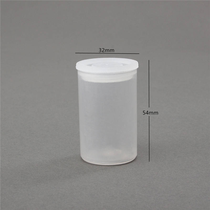 Feature: -This is a used to load the film plastic cans, it can be 35mm film,coins, and everything you can imagine small items. -Color:White,Black,Transparent -Material:Polyurethane -Size:54*32mm Package included: 10xPlastic cans