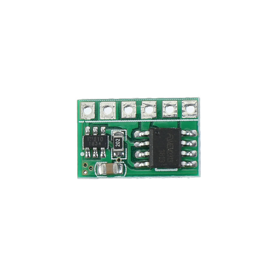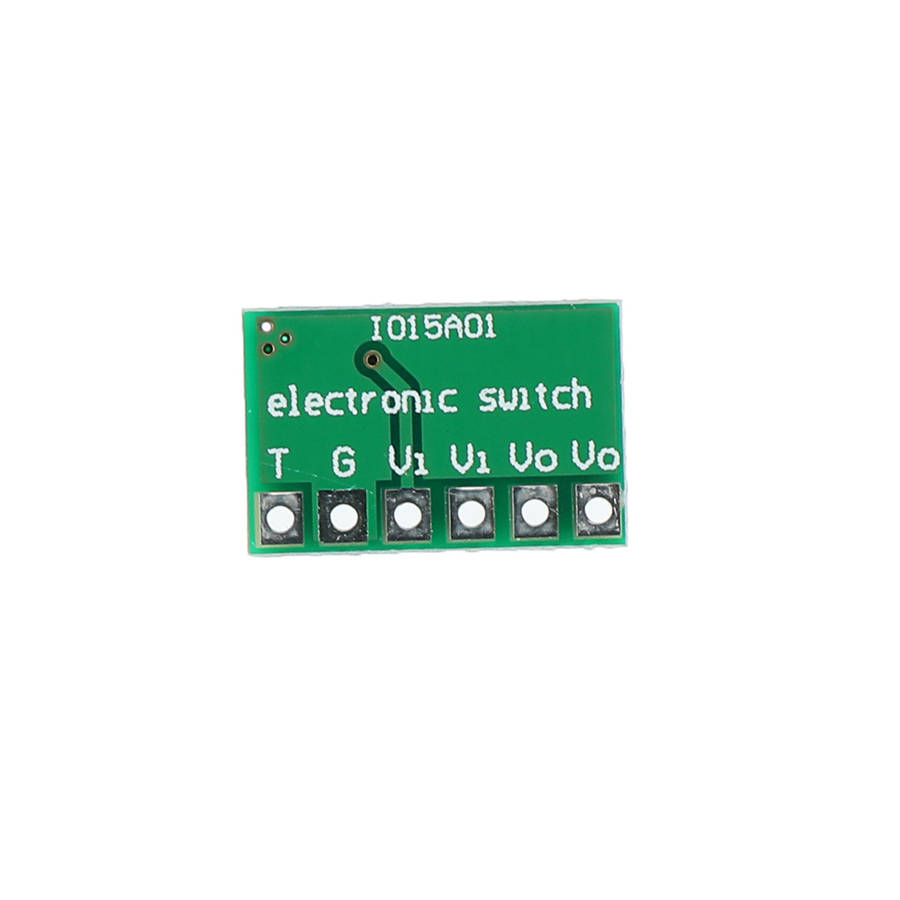 Description: Falling edge - triggered. Initial state after power no voltage output, once triggered, output terminal output the power supply votage, after once again trigger the output terminal no voltaged output, and so on. Low standby power consumption, high output power. Specifications: Power supply voltage: DC 2.5V-6V Standby current: less than 10uA Driver IC is Dual P-channel MOSFET MEM2313,Maximum drive current is 6A Allowing continuous output current: 5A(5V-6V) 4A(3.7V-5V) 2A(2.5V-3.7V) Pin pitch: 2.54mm. Size: 15.5 x 10 x 2.5mm Note: Inductive load, the load to the appropriate freewheeling diode in parallel to avoid damaged to the switching elements of the circuit. Pin Description: Vo:output; Vi:power supply; G:power ground. T:trigger signal input terminal; Applications: MCU Development Board Motor mobile power LED Lighting 5V Relay esp8266 WIFI MODULE 315M 433M Wireless remote controller