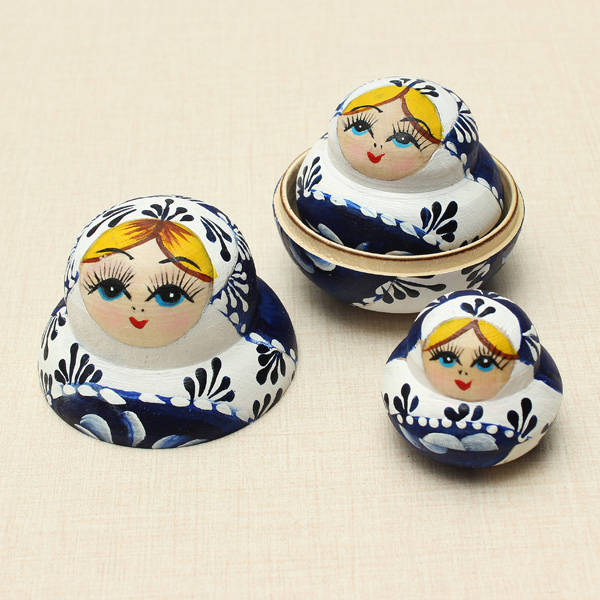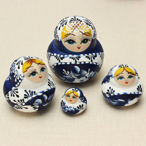 10Pcs Matryoshka Russian Doll Wooden Nesting Toys Engraved Model Kids Gift
