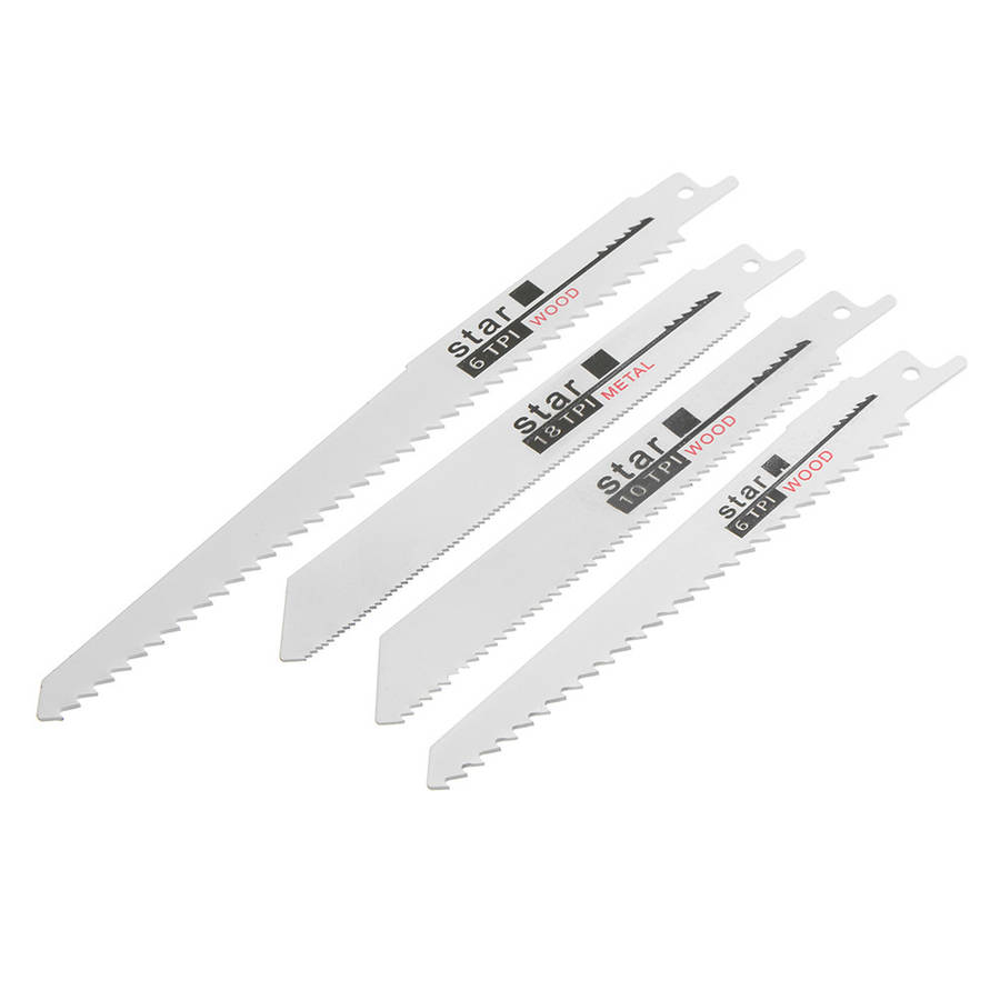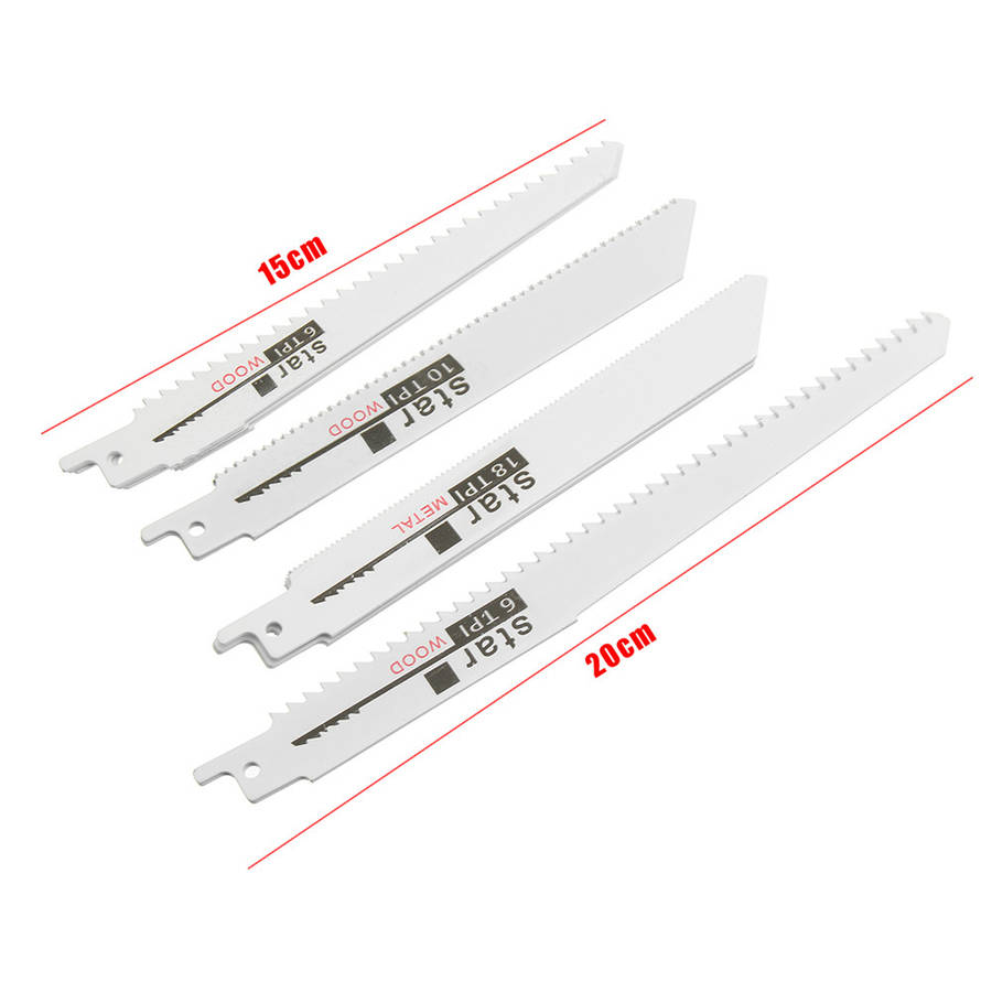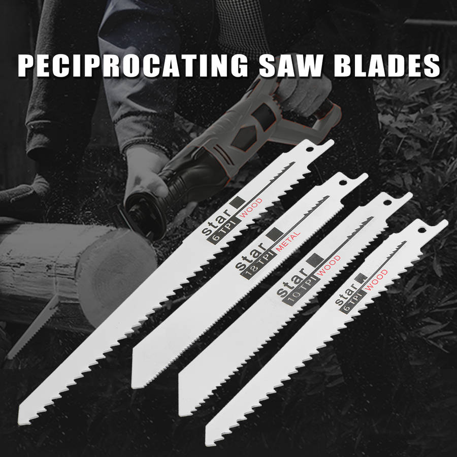 Package weight: 0.25 kg Description: 10pcs Reciprocating Saw Blade for Wood Metal Cutting Specification: Color: White Quantity: 10pcs/set Material: Alloy Features: Reciprocating saw blades, great for wood metal cutting Special materials for cutting wood and metal High hardness, durable to use Longer lasting bi-metal blades for sheet metal, re-bar, and pipes Rugged tempered high-carbon steel blades for wood general purpose Package Included: 3pcs 6" x 6TPI for cutting wood 2pcs 8" x 6TPI for cutting wood 2pcs 6" x 10TPI for cutting metal 3pcs 6" x 18TPI for cutting metal