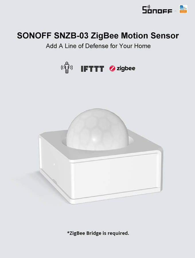 If your concern is not only about home security but about using motion to turn on or off the light, well, SONOFF SNZB-03 maybe makes you feel amazing. This ZB motion sensor is an extra-handy smart device for placing anywhere in your home to detect motion and trigger alarms. That means the sensor will send an instant alert notification to your mobile phone whenever the motion is detected if this security system is armed. If you have a?, you can connect the sensor to it to activate Wi-Fi devices, not merely ZB devices. For example, you can set a scene for your living-room light so that it will automatically turn on when you walk through the living-room. The new camera feature is used to make you know who is approaching your home and capture the video ever earlier than before. Boasts 110?ᆪview field and 6m detection rang and you can early receive an alert message of someonea??s presence, accordingly taking measures to reduce the possibility that your house is threatened. Share control is available for multiple users to check and monitor your home together. Easy and tool-free installation, 3M adhesive installation significantly saves your time. Powered by the battery which is convenient to stick it on any place that you want to monitor.? Feature: - Create smart scenes to activate Wi-Fi smart devices. - Detect movement and trigger alert messages. - Turn on/off the devices through your movement. - Work with the SONOFF camera to monitor your home. - 6m detection distance and 110?ᆪviewing angle. - Share the sensor to your family to together keep eyes on your home. - 3-month history records check. - Low-battery notification. - Quick peel and stick installation. Specification of SONOFF SNZB-03: Battery: 3V(CR2450); Wireless protocol: ZB (IEEE 802.15.4); Material: PC; Dimension: 35X39X28mm Download Center: