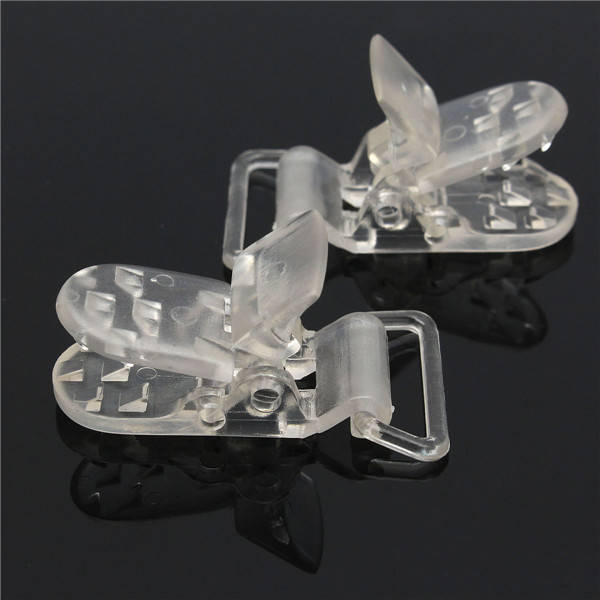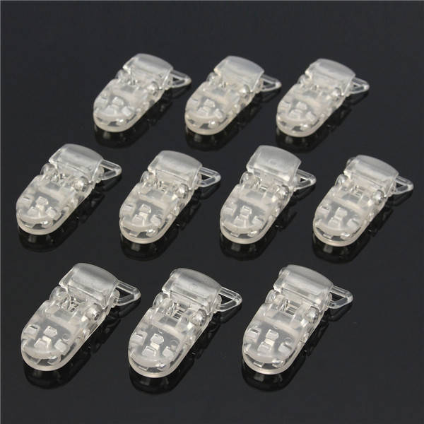 Features: Perfect for a variety of craft projects including making badges, dummy straps, suspender buckle, bib clip. The finest, safest dummy clips on the market! Ribbon is not twisted or snagged when a dummy clip is created Descriptions: Material: Plastic Color: Clear 1pcs weight:4g Total weight:45g Size (L x W): Approx. 39 x 16mm Loop Width: Approx. 20mm Package Included: 10 x Dummy Clips