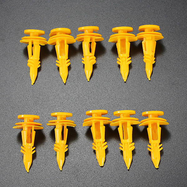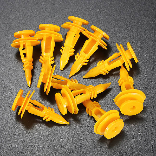 Color: Yellow Quantity: 10 pcs Stem Length: 25mm Fits into 8mm holes Top Head Diameter: 13mm Bottom Head Diameter: 18mm Manufacturer Part Number:AU/CL17A Interchange Part Number: 6502991 Other Part Number:6502991