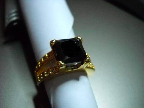 10x10mm BLACK SAPPHIRE & CZ SIMS SET IN 14kt YELLOW GOLD PLATE RING. STUNNING