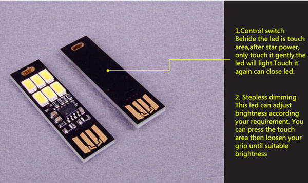 Descritption:1W 50LM Mini Touch Switch USB Mobile Power Camping LED Light LampThen a magical mini LED lights, we use the latest fingerprint technology, will be able to use your fingers to achieve control