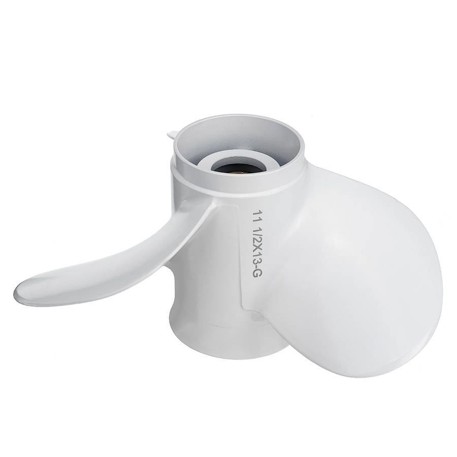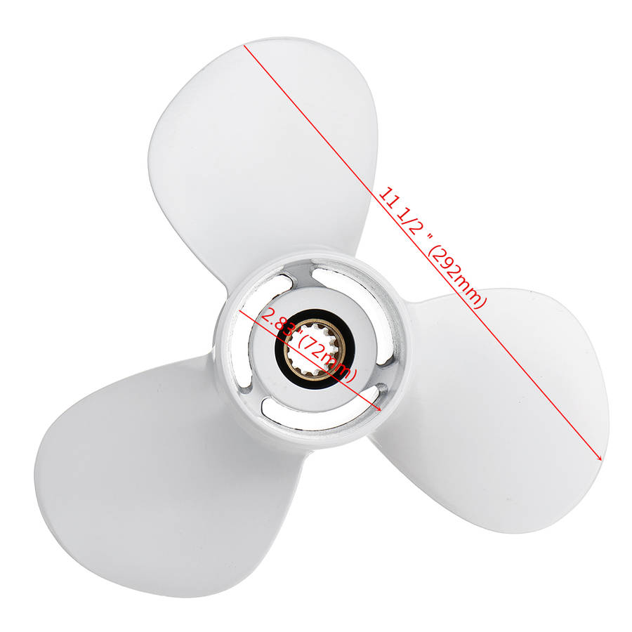 Specification: Material: Aluminum Color: White Pitch: 13 Rotation: R Number of Blades: 3 Number of Spline Tooth: 13 Diameter: Approx. 11 1/2 (292mm) Fiment: For Yamaha Outboard Engines 25-60HP 3-1/2 Gearcase T25HP 2010-newer F30 (4 Stroke) 2001-2005 40HP (C40) 1984-Newer 48HP 1995-2000 50HP (Not T50) 1984-Newer F40 (4 Stroke) 1999-Newer F50 (4 Stroke) 1995-Newer 55HP 1976-1995 60HP 1976-1991 F60 (4 Stroke) 1999-Newer