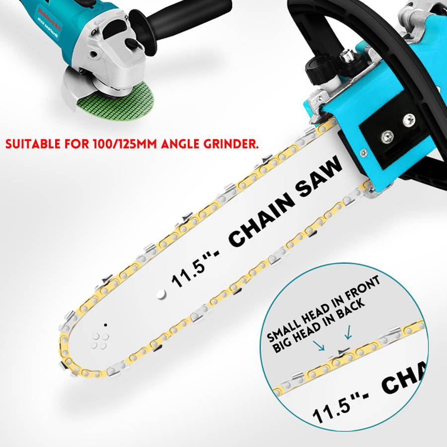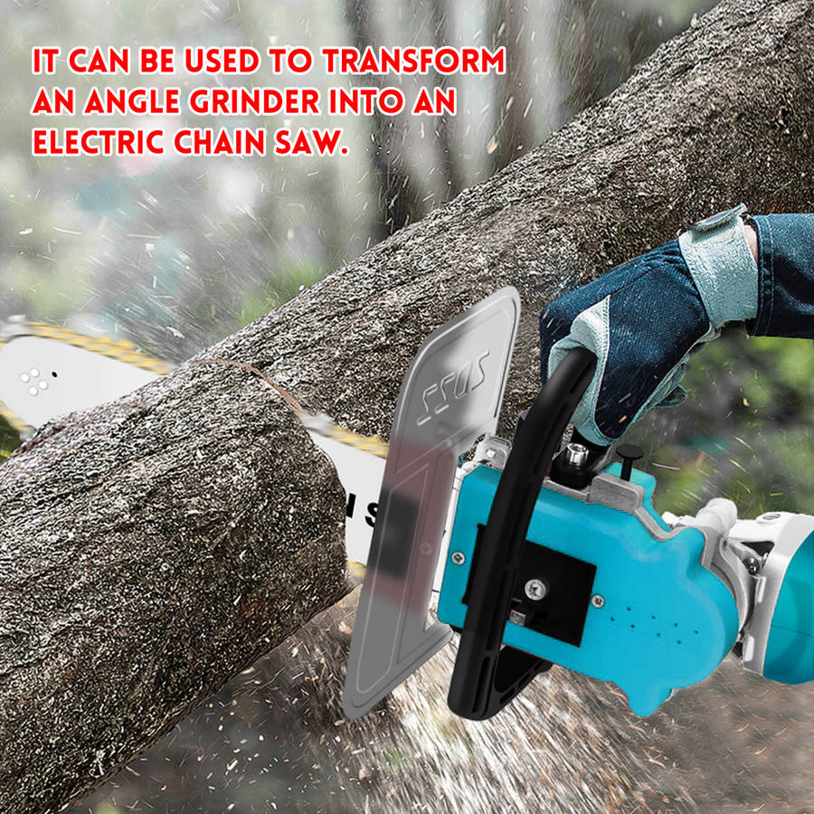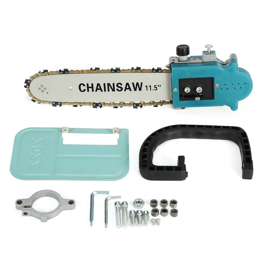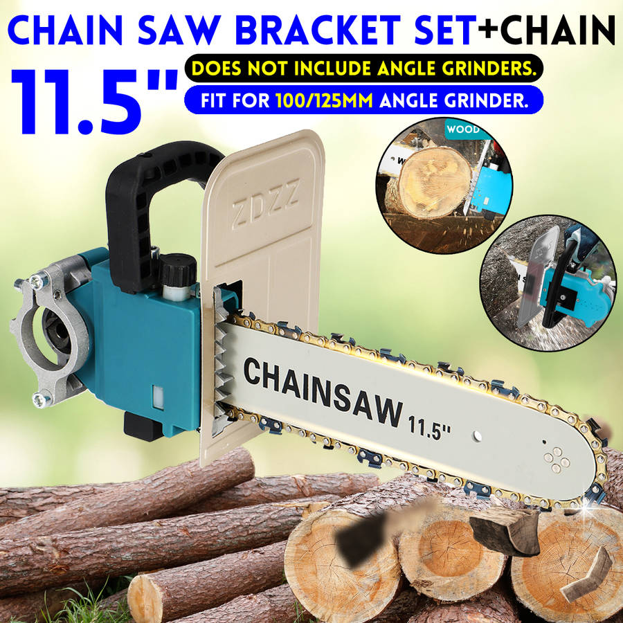 Specifications Name:Chain Saw Bracket+Chain Suitable for 100/125mm angle grinder Color:blue+silver+black Chain Color:gold Guide Bar Material: Spring steel Chain Material: High Carbon Steel Drive Link Quantity:45 sections Guide Size:11.5 Cutting Diameter:28cm/11in Features -Suitable for 100/125mm angle grinder. -It can be used for outdoor logging, wood cutting, etc. -Lightweight design of the body makes work easy and convenient. -Brushless motor, strong power, easy logging, no machine burning. -Visual oil window, oil can can automatically add lubricant to the chain. -It can be used to transform an angle grinder into an electric chain saw. -The quenched titanium alloy chain is sharper and more wear-resistant. Package Included 1 x Chain Saw Bracket Set(with 1x Chain) 1 Set of Accessories (Does not include angle grinders.) More Details: