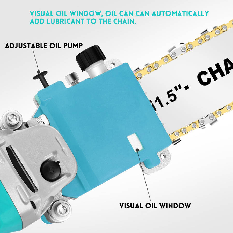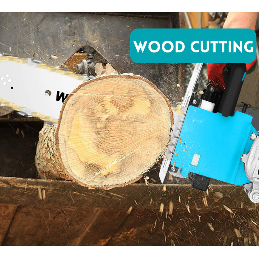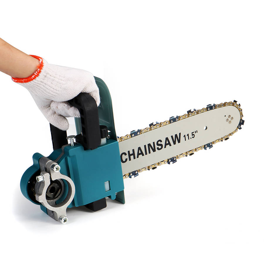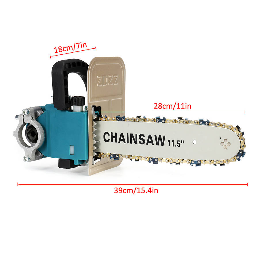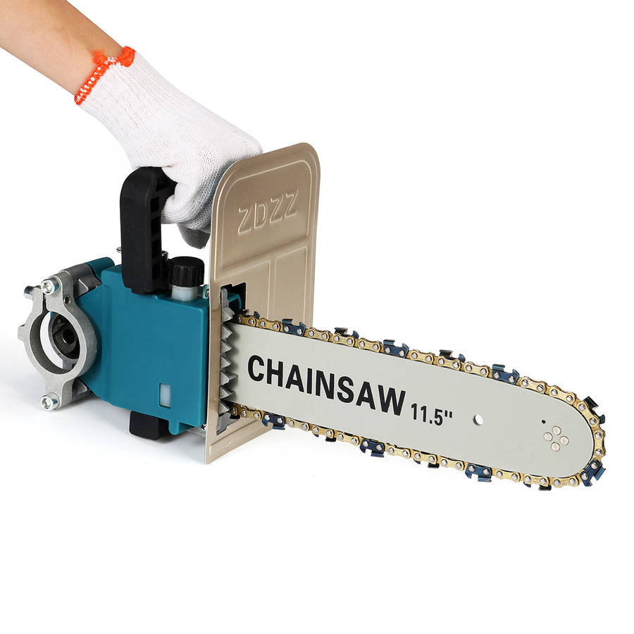 Specifications Name:Chain Saw Bracket+Chain Suitable for 100/125mm angle grinder Color:blue+silver+black Chain Color:gold Guide Bar Material: Spring steel Chain Material: High Carbon Steel Drive Link Quantity:45 sections Guide Size:11.5 Cutting Diameter:28cm/11in Features -Suitable for 100/125mm angle grinder. -It can be used for outdoor logging, wood cutting, etc. -Lightweight design of the body makes work easy and convenient. -Brushless motor, strong power, easy logging, no machine burning. -Visual oil window, oil can can automatically add lubricant to the chain. -It can be used to transform an angle grinder into an electric chain saw. -The quenched titanium alloy chain is sharper and more wear-resistant. Package Included 1 x Chain Saw Bracket Set(with 1x Chain) 1 Set of Accessories (Does not include angle grinders.) More Details: