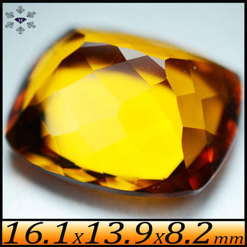 11.83CT BRIGHT BRAZIL GOLDEN YELLOW CITRINE [VVS] - PRECISION BRILLIANT FANCY CUSHION GEM