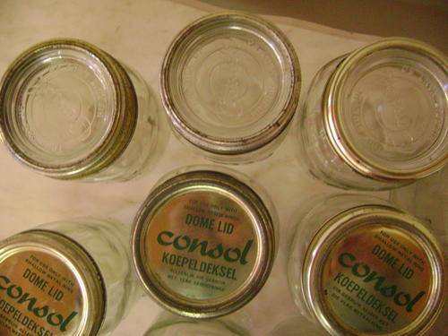 FOR SALE THIS LARGE COLLECTION OF CONSOL GLASS CANNED FRUIT BOTTLES