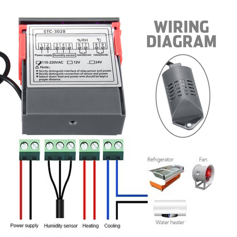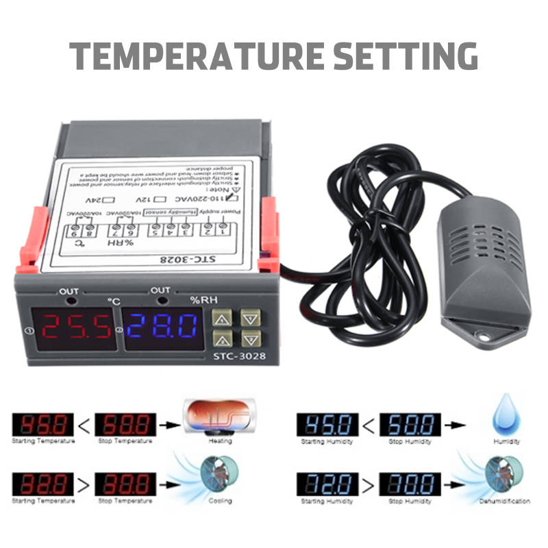 110-220V STC-3028 Dispaly Temperature Humidity Thermostat Controller Temperature Humidity Contr