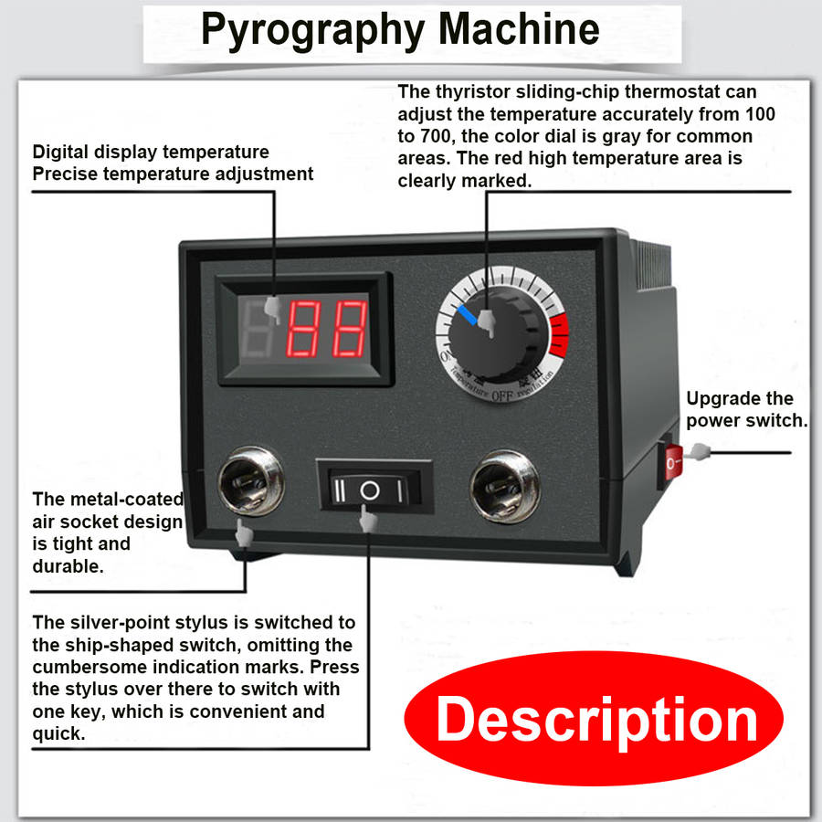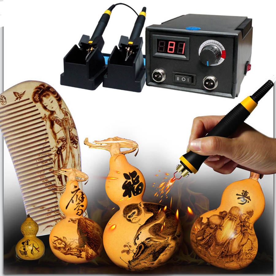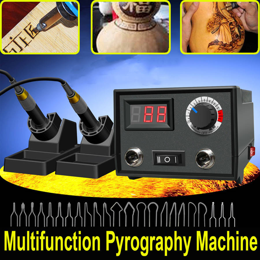 110V/220V Digital Multifunction Pyrography Machine Gourd Wood Craft +2Pen+23Tips