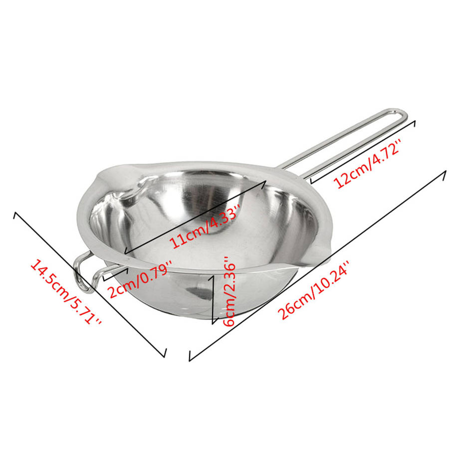 Material: Stainless Steel Color: Silver Size: (L) x (W) x (H) 26 x 14.5 x 6cm / 10.24'' x 5.71'' x 2.36'' (appr.) Inner Diameter: 11cm / 4.33'' (appr.) Features: - Made of stainless steel material, with a mirror polished finish, durable, safe and healthy. - Used to melt chocolate, butter, milk, and heating. - Simmering water to melt, try to avoid fire. - Ideal tools for those wishing to create their own homemade chocolate treats for birthdays, gifts, Christmas, etc. - A quick and easy alternative to making a bain-marie, this melting pot features twin pouring lips which act as rests to melt chocolate easily over saucepans. - Dishwasher safe, easy to use and clean. - Guide groove design, avoid spilling out. - Handle suspension design and the short hook handle, convenient for use. Package Included: 1 x Chocolate Melting Pot