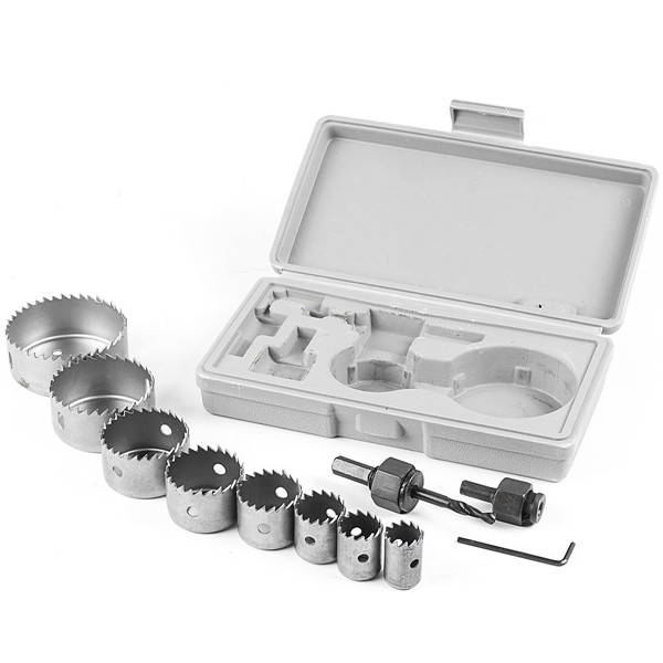 Specification: Material: Alloy Metal Case size: 190x105x46mm Hole saw sizes: 0.57a/19mm, 0.66/22mm, 0.75/25mm, 0.96/32mm, 1.05/35mm, 1.32/44mm, 1.53/51mm, 1.92/64mm Features: It includes 8 carbon steel hole saws, 2 arbors with pilot drill and allen key. Cuts smooth, clean, accurate holes through wood. Suitable for cutting wood, thin sheet metal and thin alloys. Package Included: 11 xHole Saw Cuttter Drill Bits