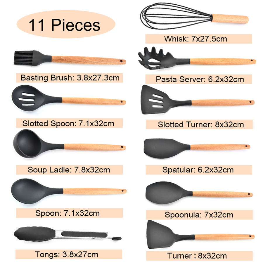 11Pcs Edible Silicone Non-stick Kitchen Utensils Set Cooking Spatula Gadget Tool