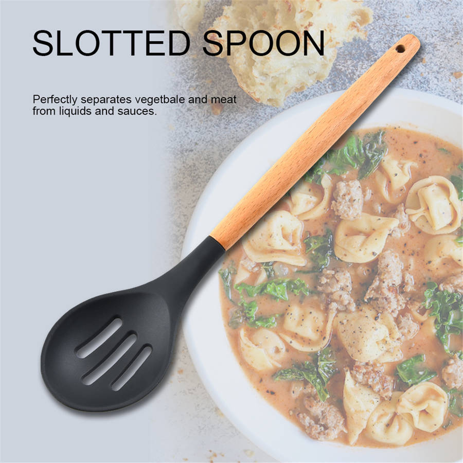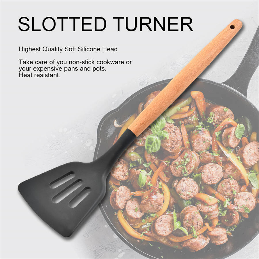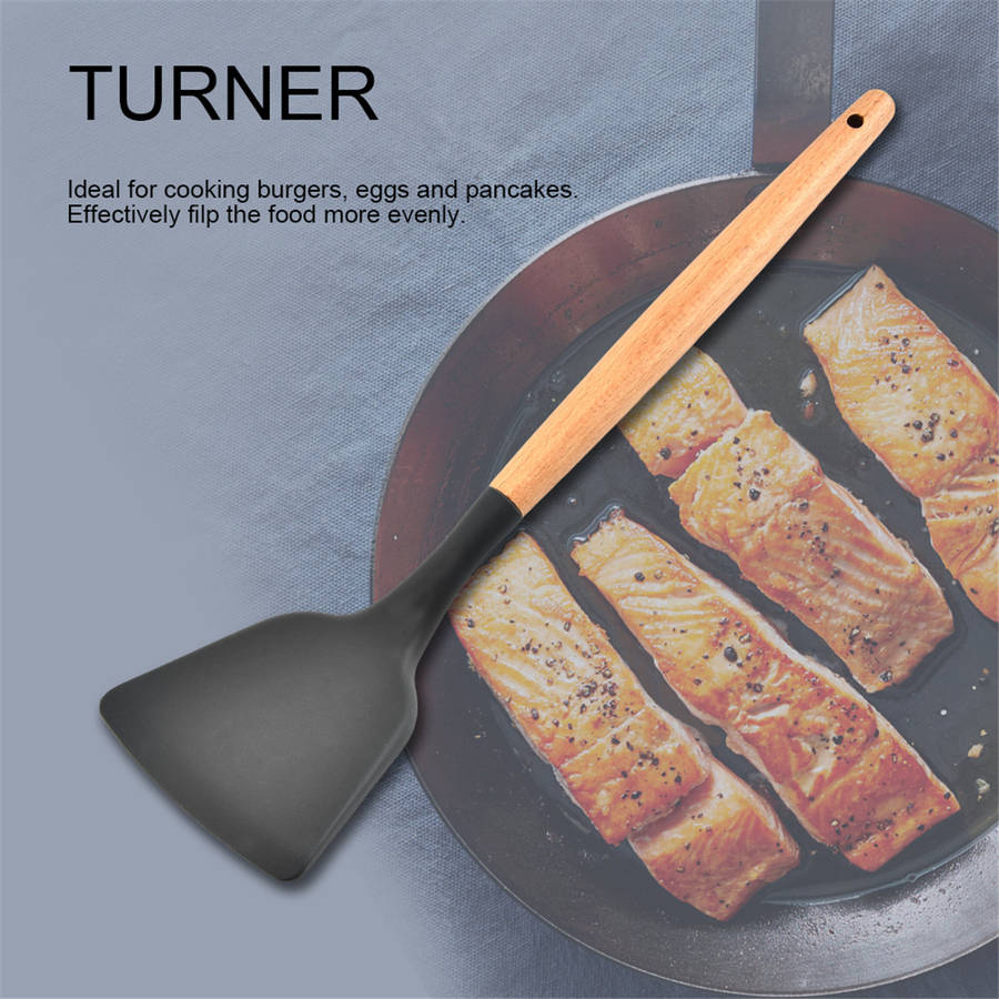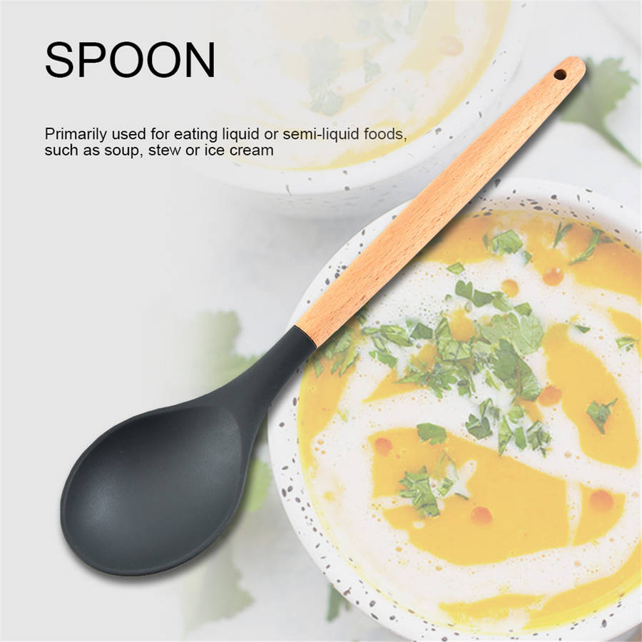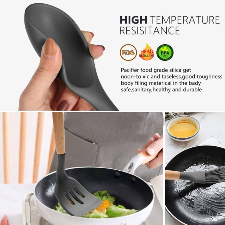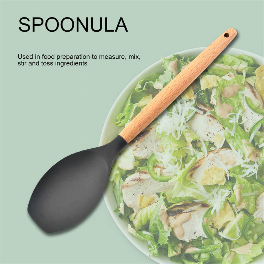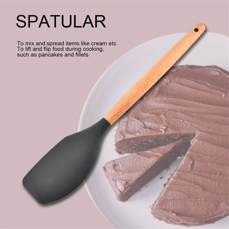 -Easy to operate, safe and reliable. -There should be a need in the kitchen. -Made of silicone, high strength and corrosion resistance, long service life. -Environmentally friendly, resistant to -40 to 230 degrees Celsius, easy to clean. -Wooden handle, anti-firing, convenient to use, easy to store. -Using high quality food grade silicone, environmentally friendly and durable. -Perfect weight balance, easy handling and very practical cooking.
