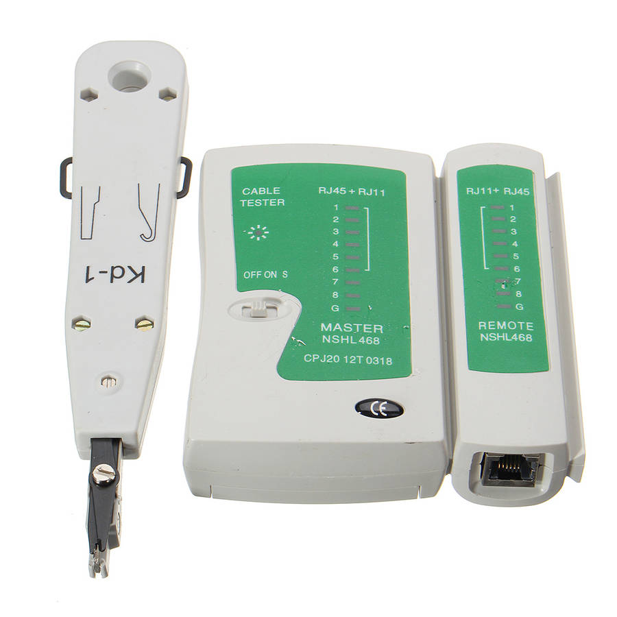 Features: * Three pressure crimping pliers 4P / 6P / 8P crystal head for a variety of cable and telephone line compression joints, high hardness of the precision crimping die, durable and does not damage the network terminal * 468 tester, using automatic scanning, fast test, streamlined shape, drop, light design * 501 stripping knife, stripping line does not hurt the core, suitable for a variety of wire diameter, durable, blade positioning accuracy, to prevent damage to the cable, use only a few turns of the fingers, you can remove the cable sheath, more convenient practical * KD-1 wire knife, the material for the steel, handle for the engineering plastics, high hardness metal blade and strong plastic composition, durable, has been used, used in cable, module and patch panel connection * Mini card knife, a variety of stripping specifications, thick lines of arbitrary rotation, but also has a card line function