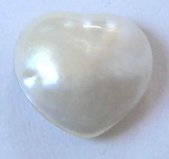 This Mabe' cultured pearl - weight 4.20 cts. white -sidef colour , measures 12.00 mm heart shape x 5.00 mm thick , it is new , origin- Japan, white colour, good lustre and is ready for setting.