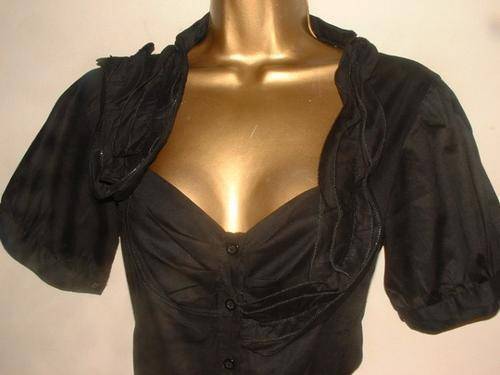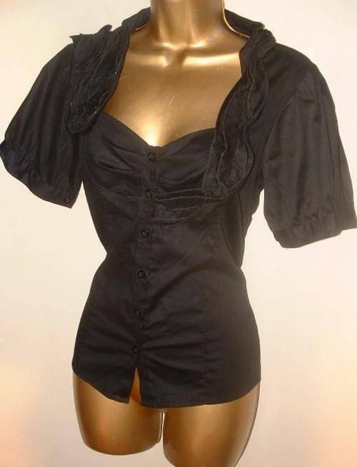 12 - 14 / 36 - 38 New ladies black stretch detailed shirt STUNNING GARMENT HOT.