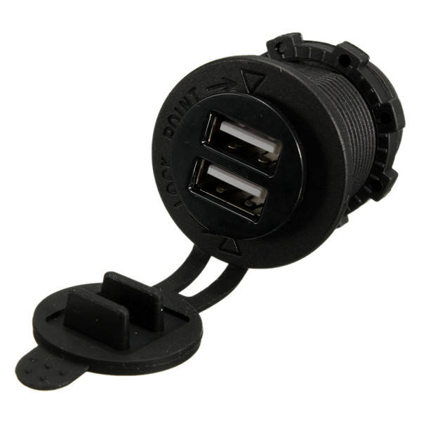 Description: 5V output port With a waterproof cover element Motorcycle usb charger socket Two USB auxiliary sleeve are ideal for driving , MP3 player ,GPS, iPhone and other devices Two auxiliary USB power plug socket , more convenient Connected to any 12V DC electrical system No batteries to rely on Easy and fast to install