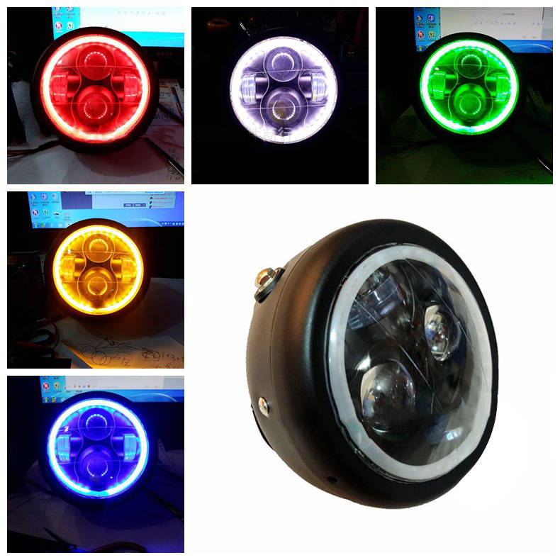 12-60V 35W Motorcycle Modified LED Headlights Retro Front Metal Headlight For GN125