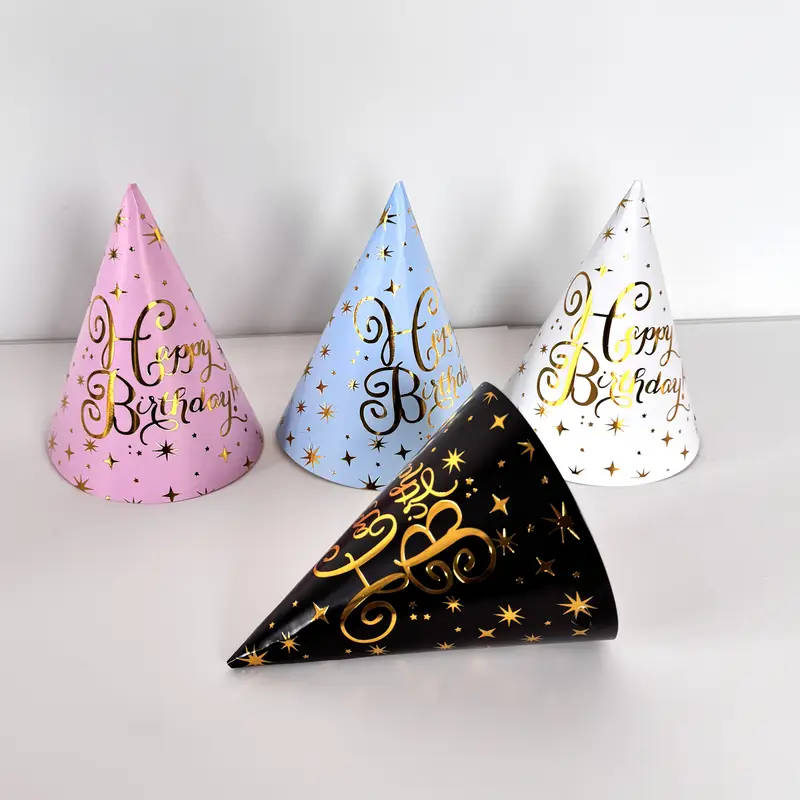 12 pieces birthday hats, 4 colors mixed, 3 pieces per color, exquisite paper happy birthday hats, DIY flat delivery
