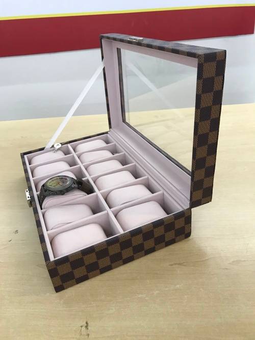 12 BLOCKS WATCH BOX ''''Louis Vuitton''Design Looks very Luxury Lint Material Covered the watch holder soft touch feeling And most important ting is about the designnnnn... Very good quality as you saw on the picture |