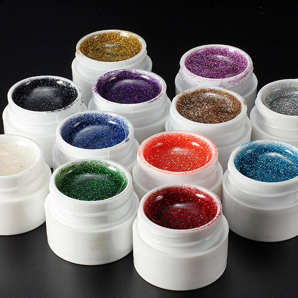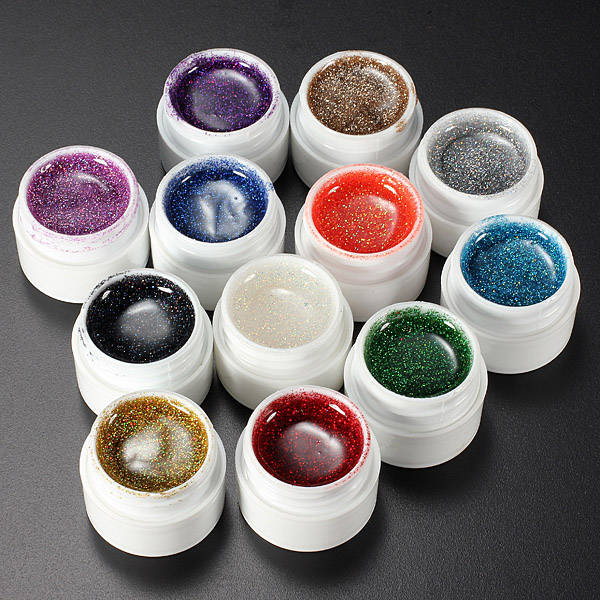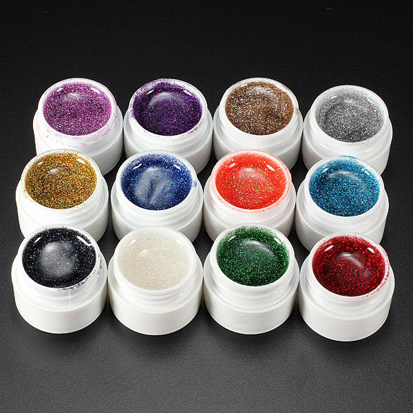 12x Nail Art Uv Gel Glitter Soak off Gel ( random 12 colors )