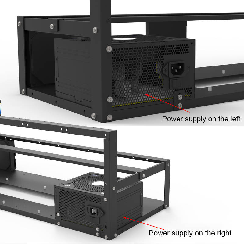 1. Big capacity: up to 12 x GPU slots (GPU is not included) 2. Keep all cables clean and organized, along with everything in your mining machine. 3. Beautiful, elegant, keeps the machine perfectly organized while it holds the least amount of heat possible. 4. Easy&Fast installation with detailed guide. 5. Made up of the highest quality iron material, with the finest craftmanship. Note: 1. Don't support directly plugging the graphics card into the motherboard 2. The frame only,not including computer hardware, you need to get 3. your own Motherboard,Fans,Cables, Memory, PSU, CPU and GPU. 3. Please allow deviations of 1-3cm due to manual measurement. Package Listing: 1pc*12 gpu mining case(need to assemble by yourself)
