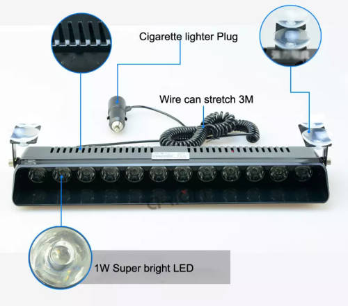 12 LED Strobe White Emergency Vehicle Flash/Warning Dash 3 Modes Light.