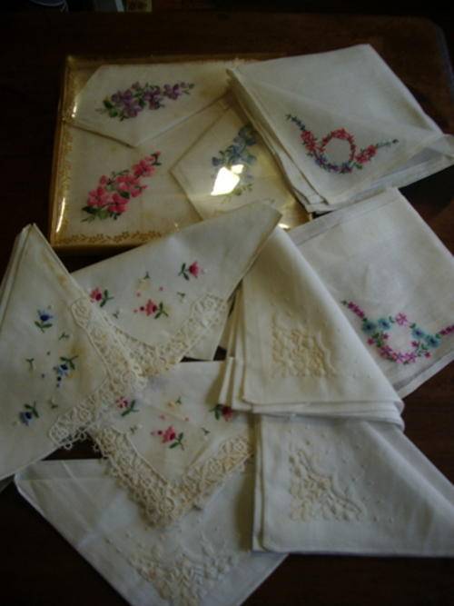 12 LOVELY EMBROIDERED AND LACEY FINE HANDKERCHIEFS