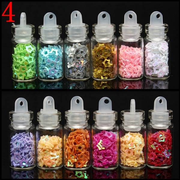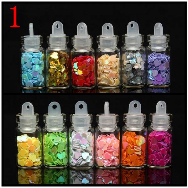 Feature: Easy and ready to use. Suitable for large volume users, like professional salon artists. Suitable for nail art decoration with nail polish, UV builder gel, acrylic. Make your nails sparkling and add shiny colors to your nails. Suitable for professional salon or home use. There is 5 different styles to choose. Each Style includes 12 bottles of different colors. Description: Diameter: App 1cm. Bottle Height: App 2cm(Not include the cap.) Weight About: 24.5g(12 bottles) Styles: Heart, Waterdrop, Star, Flower Quantity: 12 Bottles Package Include: 12 Bottles x Nail Art Decoration
