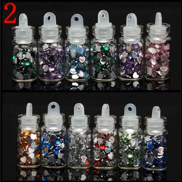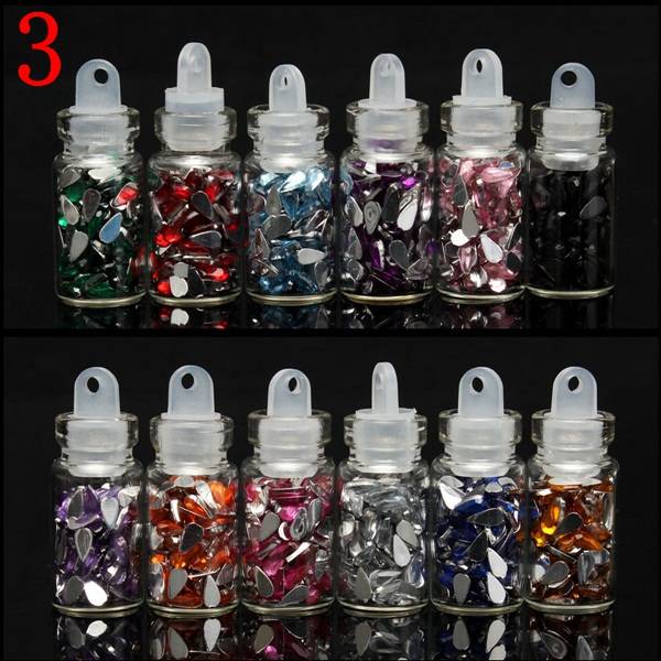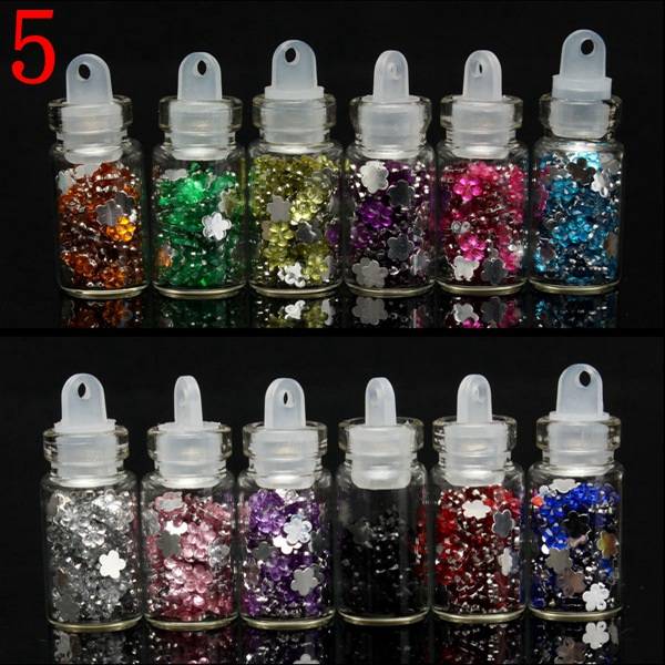 12 Mini Bottles Glitter Nail Art Tips Rhinestone DIY Decoration