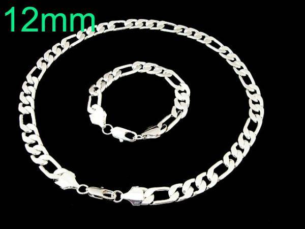 12 mm .925 STERLING SILVER FIGARO MENS CHAIN