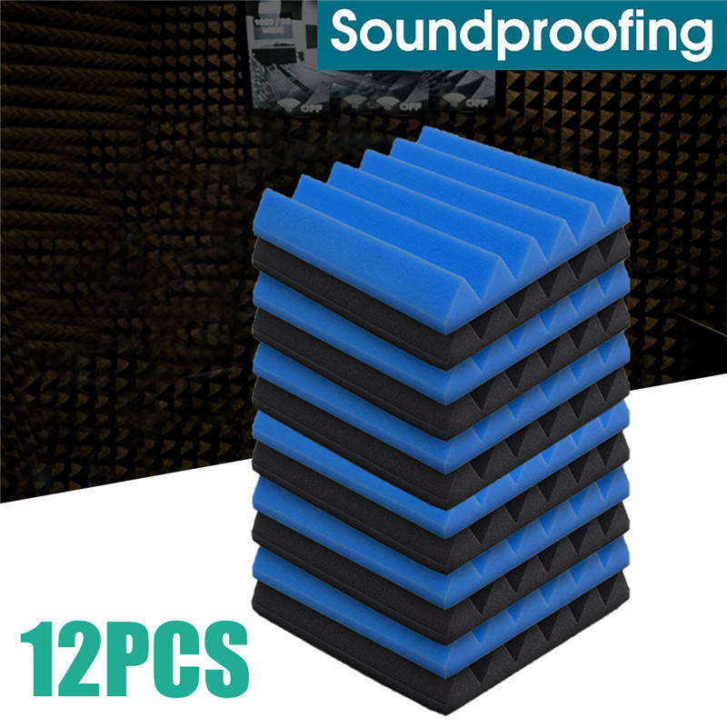 12 Pcs Black Blue Pyramid Acoustic Soundproofing Foam Tile Studio Panel 2"x12"x12"