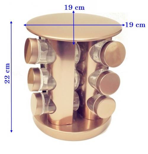 Store and organize your spices in this copper mat finish, glass bottles, Three-Sided Spice Rack. Made from high quality steel, this wooden spice stand comes with 12 small spice containers with airtight lids to keep your spices fresh and handy. The spice rack features a revolving stand that helps you select the desired condiments easily with just a simple swirl. Standing 22 cm tall in the kitchen, it not only adds functionality to your kitchen, but also brings a soft modern update to your cooking and dining space.