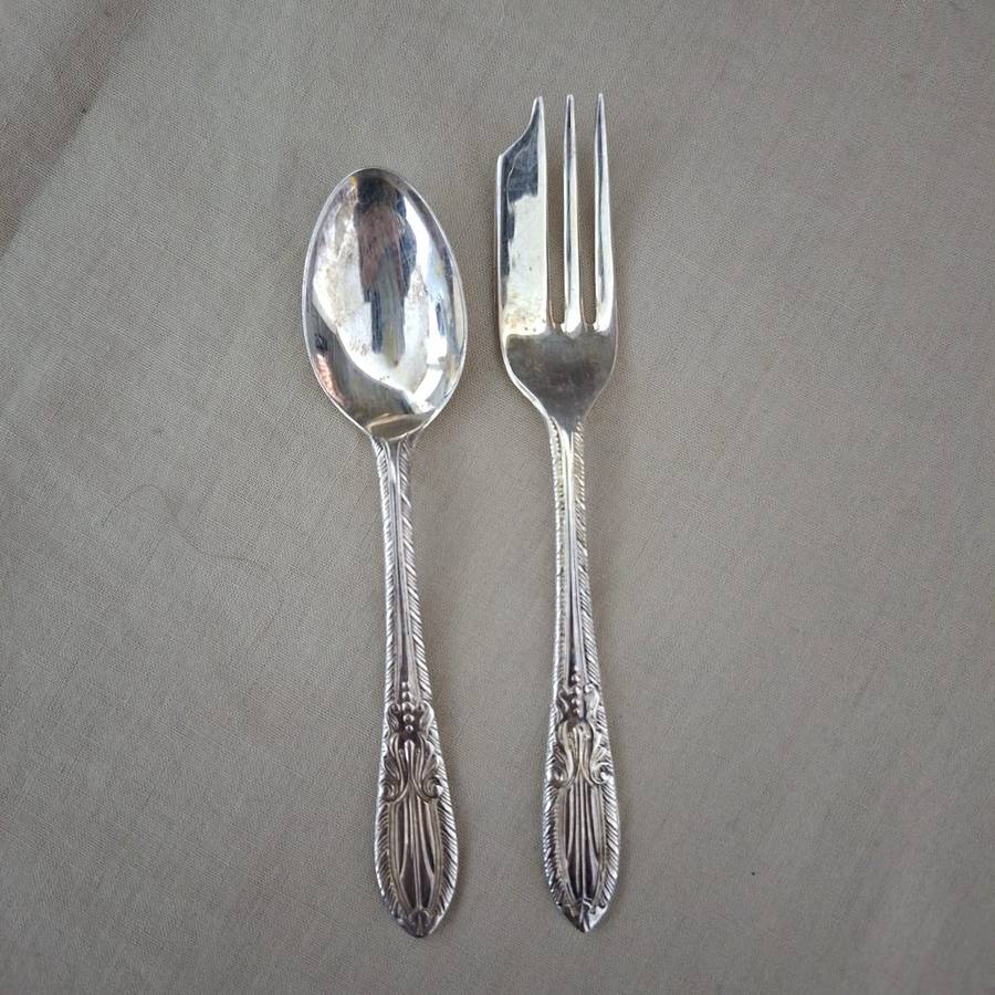 Set of 12 - 6 cake forks and 6 teaspoons. Pretty ornate handles. In good lightly used vintage condtion. Boxed. Yeoman plate Made in England. The box is in good used vintage condition. Both clasps are good. Inside lining has a little light foxing. Please look at the images as they are part of my description. I have not cleaned them.
