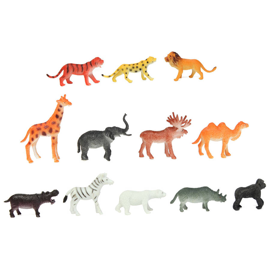 Package Included:A hippo, a tiger, a giraffe, an elephant, a deer, a zebra, a camel a leopard, a gorilla, a lion, a yellow leopard and a rhino