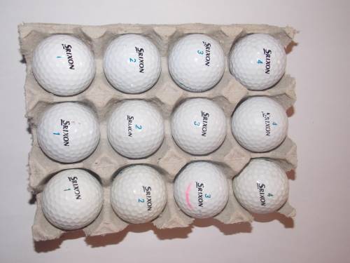 12 Srixon second hand golf balls. Numbered in blue 3 number 1's, 3 number 2's, 3 number 3's and 3 number 4's (1 in green number 4). The balls are in excellent condition, with almost no damage to the balls (as can bee seen on the pictures). The unique design of the Srixon golf ball is that it assists the amateur golfer with long drives and minimum spin on the fairway. It creates good spin on the short game allowing the ball break sharply on the green. Excellent buy.