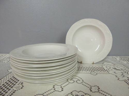 THESE VERY ELEGANT, STRIKING IN THEIR SIMPLICITY SOUP BOWLS ARE PART OF THE VINTAGE "HUGUENOT ROYALE" (MADE IN SOUTH AFRICA) RANGE. CLASSY & SOPHISTICATED ON ANY DINING ROOM TABLE. THESE BOWLS MEASURE 22cm ACROSS.