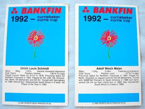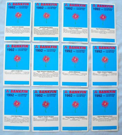 12 x SPORTS DECK CARDS-1992-NORTHERN TRANSVAAL-RUGBY-BANKFIN CURRIE CUP-EXCELLENT CONDITION-BULLS