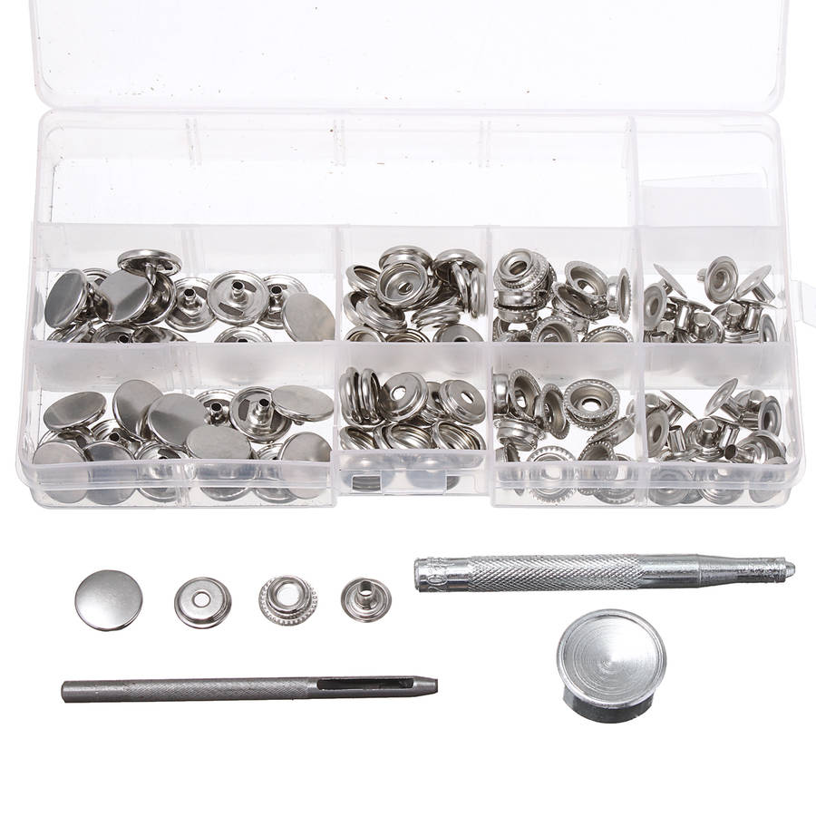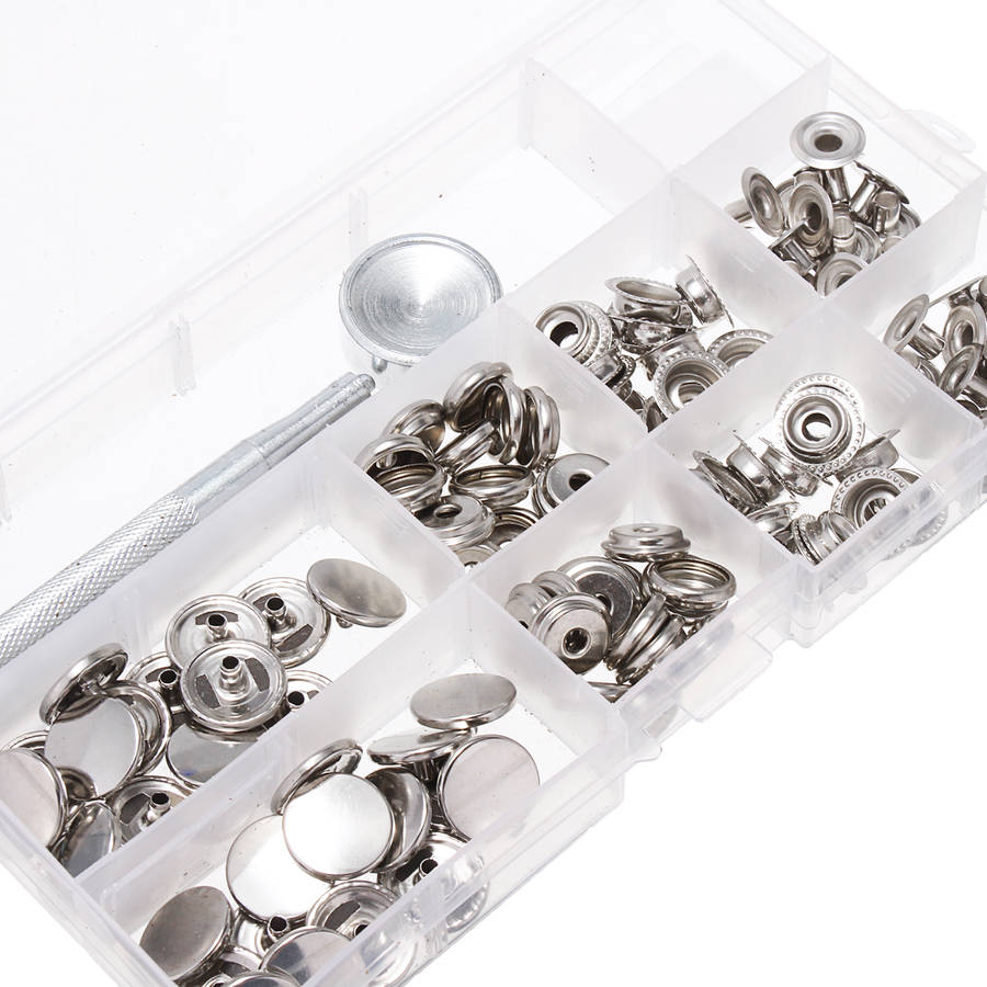 120Pcs 15mm Heavy Duty Silver Snap Fastener Press Studs Button With Tool