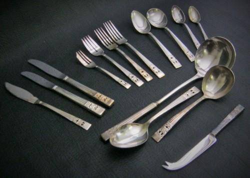 12 dinner knives & forks, 12 fish knives & forks, 12 salad knives & forks, 12 dessert spoons, 12 soup spoons, 12 teaspoons, 12 cake forks, 12 grapefruit spoons, 5 dishing spoons, 1 soup ladle & 1 cheese knife.