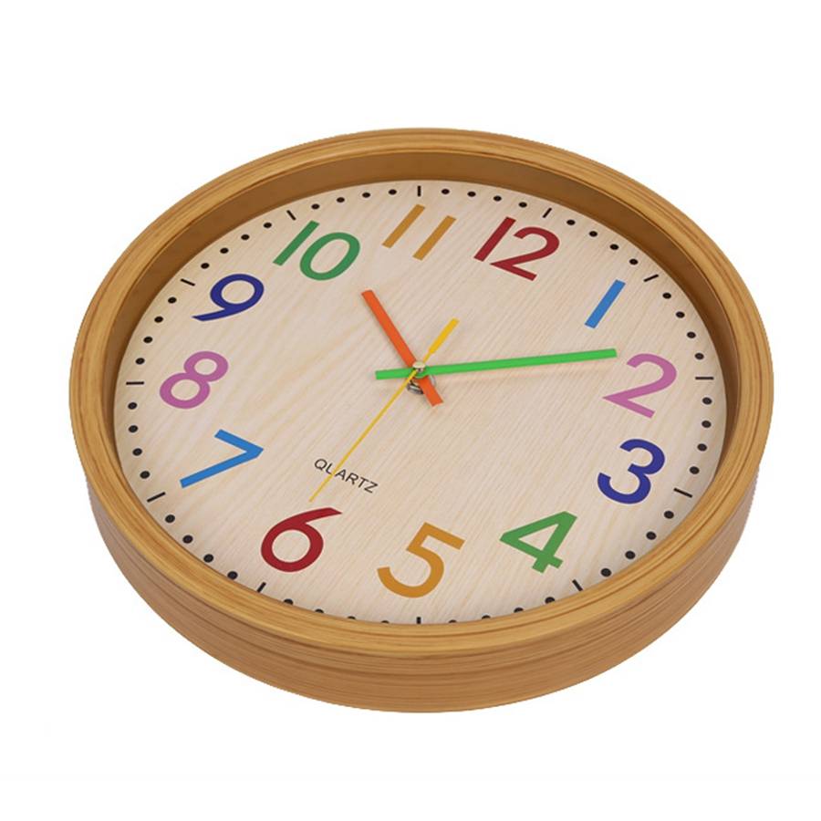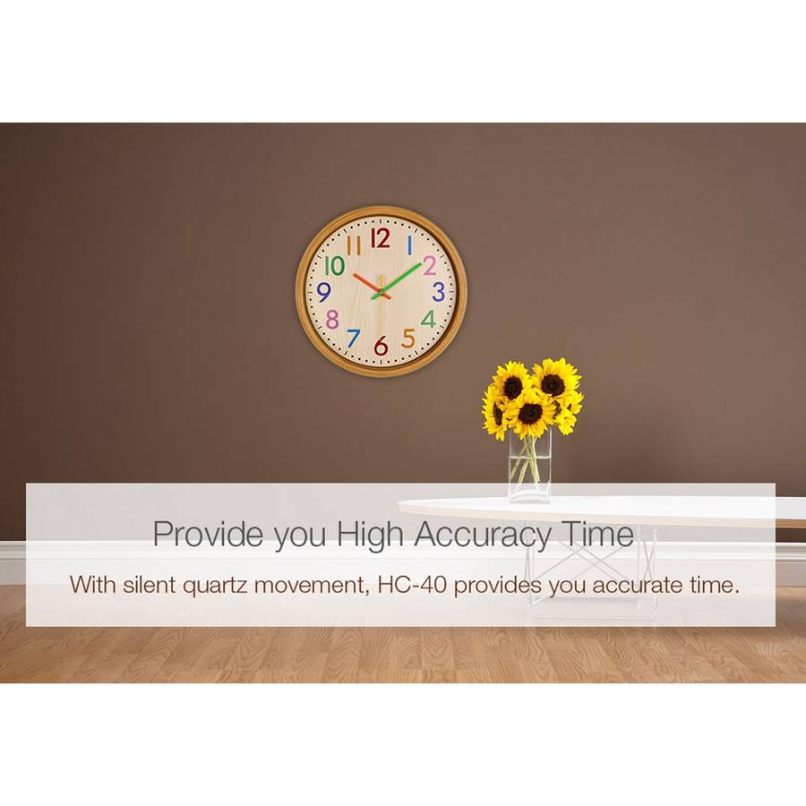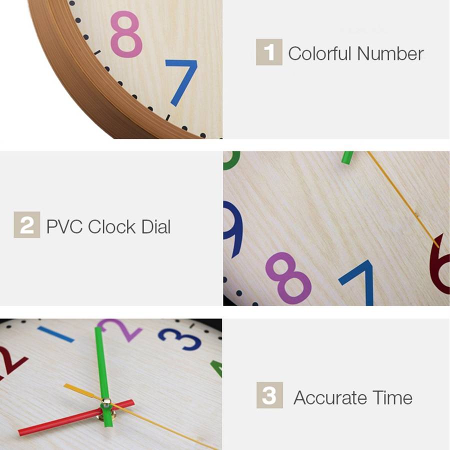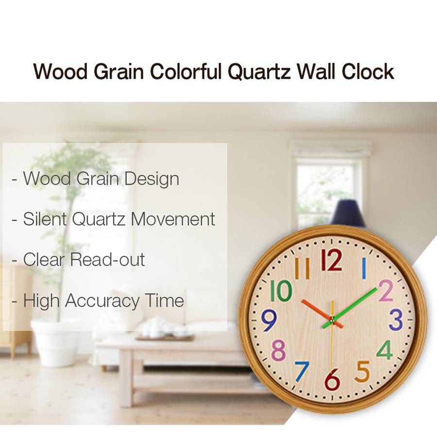 aThis product is a home decorative wall clock with creative colorful number, displays you clear time read-out.