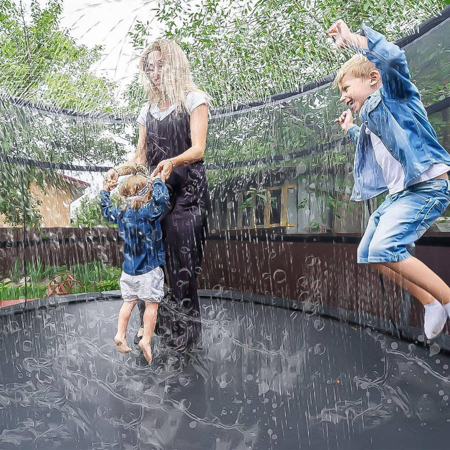 1. This trampoline sprinkler is the perfect gift for children in summer. It`s time to play outdoor games in summer. Prepare a gift for the children`s day. Tie the hose to the outside of the trampoline net, connect the hose to the watering faucet, turn on the faucet and start the children`s party in the outdoor water park